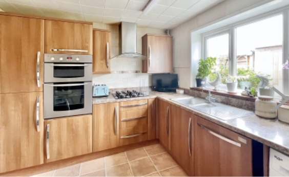 (3.53m x 2.99m) uPVC double-glazed window to the rear elevation. Fitted with base and wall storage units with work surfaces, sink unit with drainer, inset gas hob with extractor over, two ovens, space for fridge freezer, washing machine, table and chairs and radiator, door off to: -