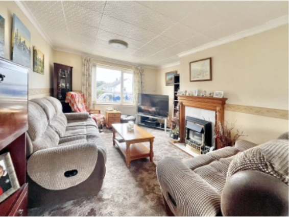 (3.04m x 6.01m) Large uPVC double-glazed window to the front elevation and sliding patio doors to the rear.Feature fireplace with gas point, and radiator.