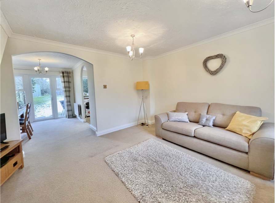 (3.53m x 4.42m) uPVC double-glazed window to the front elevation, radiator. Open Plan to: -