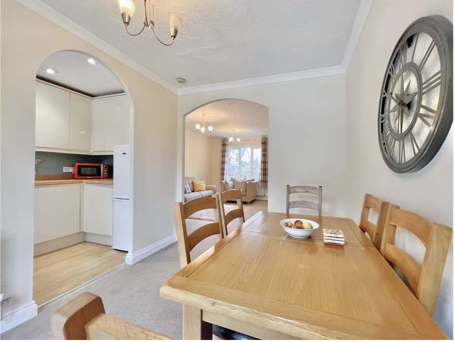 (3.11m x 1.82m) uPVC double-glazed windows to the rear elevation. Fitted with a contemporary range of gloss wall and base units with work-surfaces over, inset sink and drainer with mixer tap, inset GAS hob with extractor hood over. Integrated oven, space for a Fridge and Freezer and plumbing for and washing machine.
